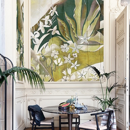 Különleges, zöld árnyalatos festett tájkép panel tapéta. 381 cm széles (3x127 cm), 300 cm magas. Khroma Elisian Sunrise DG3ELS1021-DG3ELS1022 -DG3ELS1023. A 127 cm széles szakaszok magukban is rendelhetőek, érdeklődni e-mailben lehet. Amennyiben szélesebb falra kerülne a tapéta, balra és jobbra is tud ismétlődni a minta.