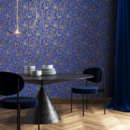 Apró virágok, hosszúkás ágak, kerek motívumok. Mintaismétlődés 64 cm. Khroma Agathe Mildred Amparo AGA402 tapéta